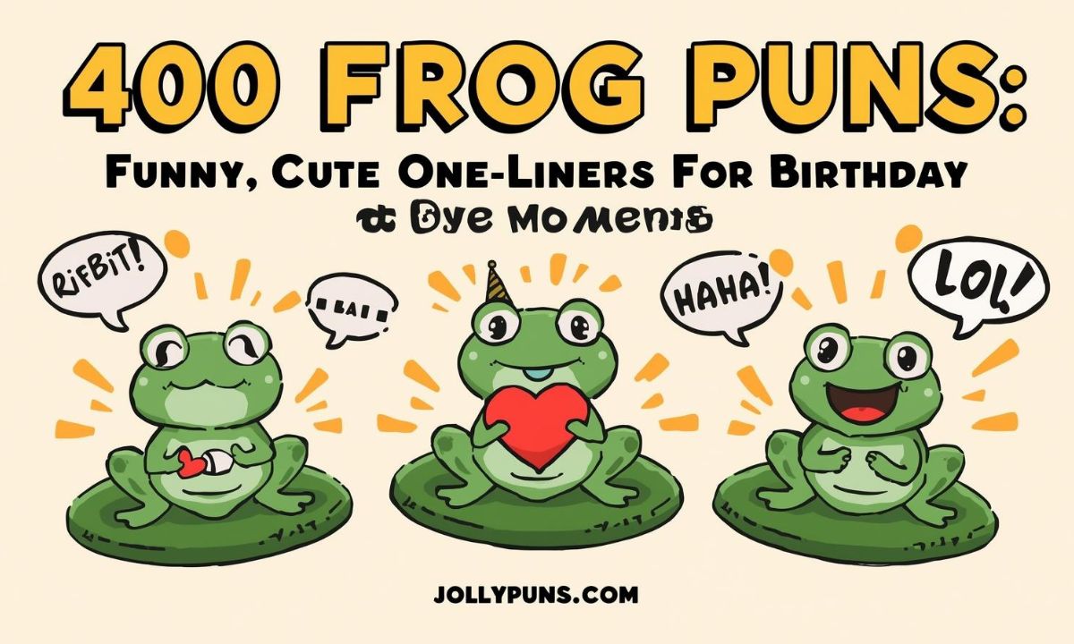 This list of 400 Frog Puns: Funny, Cute One-Liners for Birthday & Love Moments will make your day brighter. From romantic frog lines to silly birthday jokes, each pun is made to bring happiness. Share them with friends or post them online for some fun, lighthearted moments!